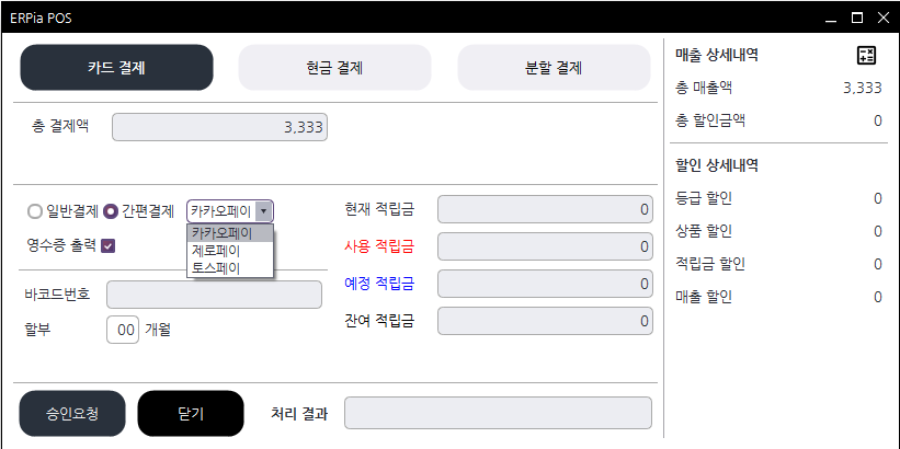 POS 간편결제(카카오페이,제로페이,토스페이) 추가